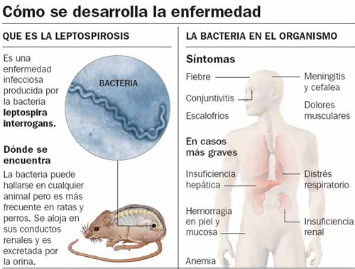 La leptospira pertenece al orden spirochaetales (han sido identificadas más de 170 variedades que pertenecen a unos 23 serogrupos), y entra en el organismo a través de la boca, naríz o pequeñas heridas en la piel. Por lo tanto, es riesgoso nadar en aguas contaminadas, caminar descalzo por el barro o tomarlo con las manos en el campo sin protegerse adecuadamente.